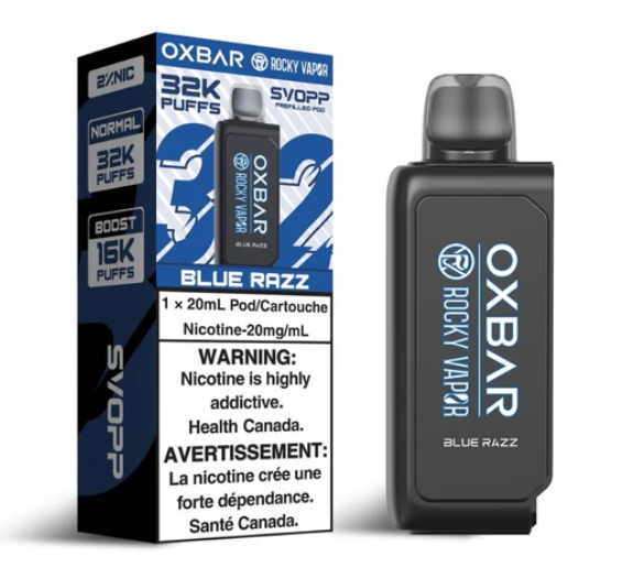 Experience a burst of berry bliss with Blue Razz from the Oxbar Svopp Rocky Vapor 32K Pod. This flavor delivers the perfect blend of sweet blue raspberries and a hint of tartness, creating a deliciously tangy vape. With every puff, enjoy the vibrant fruitiness that leaves you craving more, making it a must-try for berry lovers.