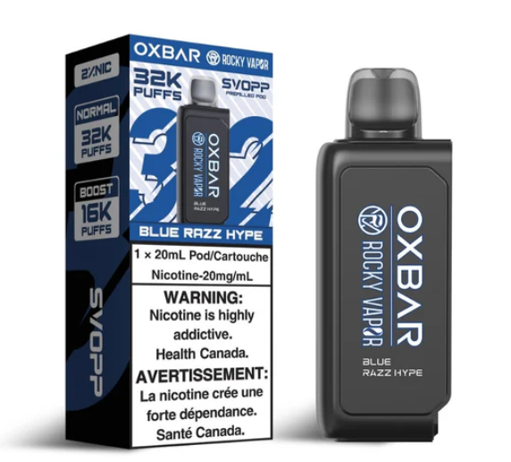 Dive into the exhilarating world of Blue Razz Hype with the Oxbar Svopp Rocky Vapor 32K Pod. This flavor amplifies the classic blue raspberry experience with an added intensity that ignites your senses. The perfect balance of sweetness and tangy notes makes every puff a thrilling adventure, leaving you refreshed and wanting more.