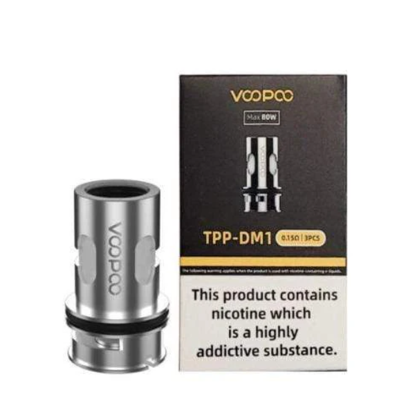 VooPoo TPP-DM1 0.15ohm Replacement Coils by (VooPoo). These coils are compatible with the VooPoo Drag X Plus device. The TPP coils are equipped with a mesh heating element to deliver faster wicking and heating; delivering delicious pure flavor from your E-liquid. With a 0.15ohm atomizer resistance, the TPP-DM1 coils provide a recommended range from 60-80W.
