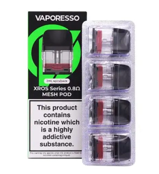 Vaporesso XROS replacement pods allow for the user to check the eliquid level without removing the pod. The XROS pods consist of a 0.8 Ohm, 1.0 Ohm, and 1.2 Ohm mesh coil pod, facilitating a hidden top fill system revealed by taking off the mouthpiece. At the base is a magnetic pod connection, allowing quick and easy coil replacements while securing the 2mL pod.